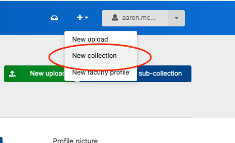 - Then selecting “New collection” from the dropdown menu: