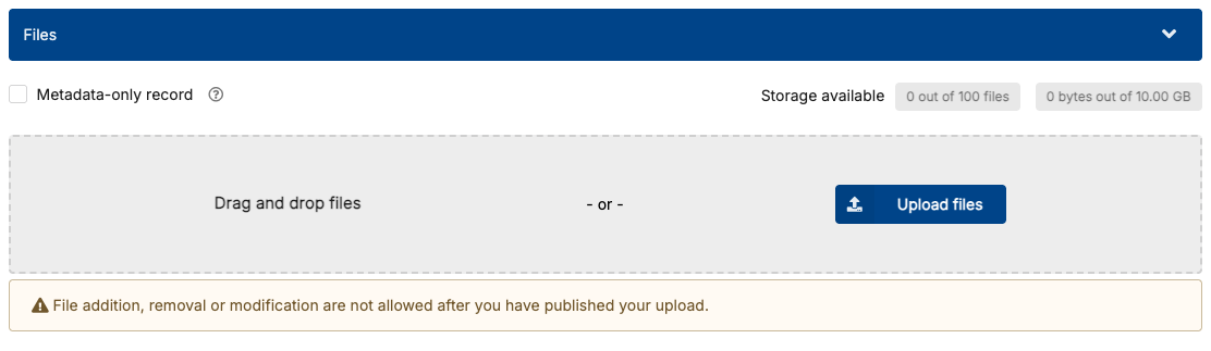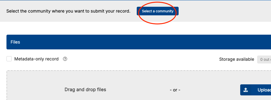 - Upload a file (or select the checkbox for "Metadata-only record":
