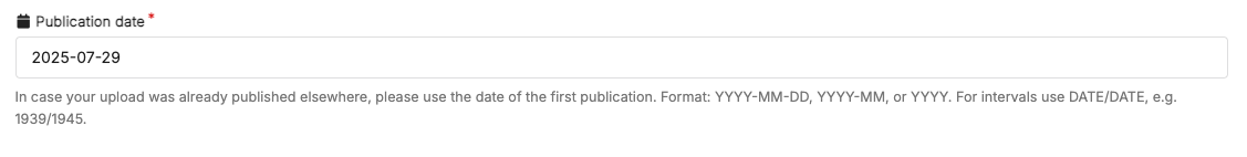- Make sure a publication date is provided (the system automatically fills this field with the current date, but you may wish to change this):