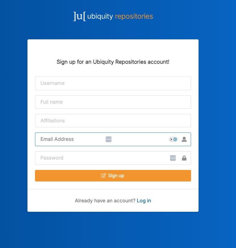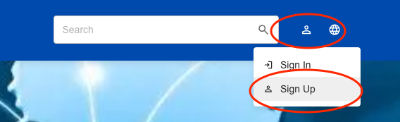 If a repository allows unsolicited sign up, you can locate the option by first navigating to and then clicking on the person-shaped icon to the right of the search bar.