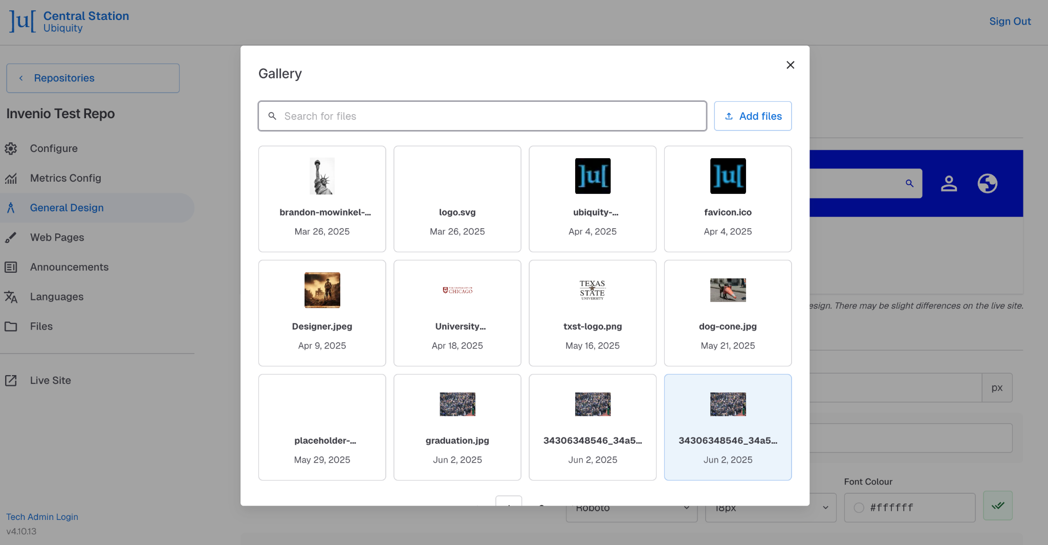 Click on the File box to upload an image from your computer or to select a previously uploaded image from the Gallery: