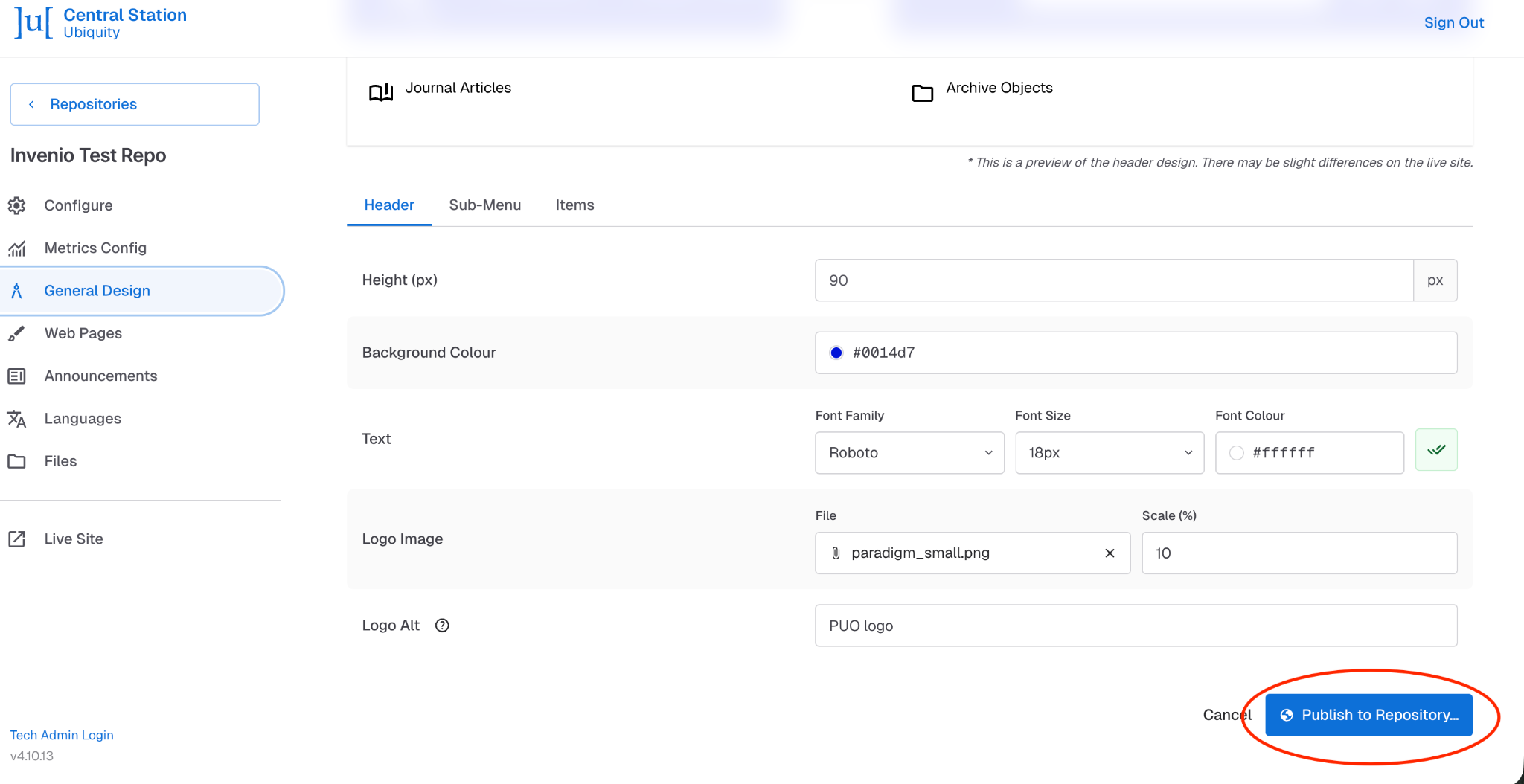 Don’t forget to save changes by clicking the blue box labeled, “Publish to Repository” at the bottom of the page: