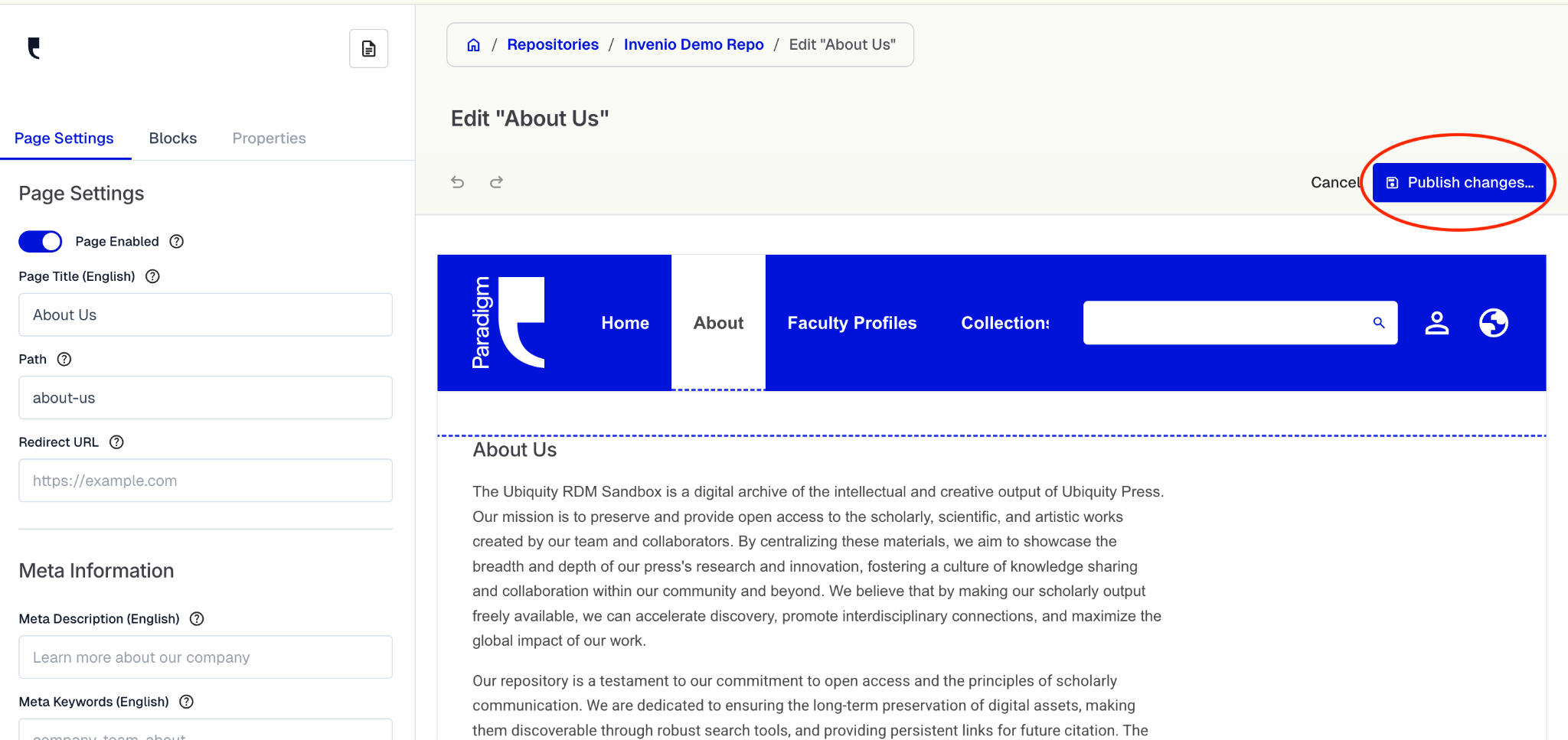 Remember to click the blue “Publish Changes” button in the top right corner after editing.