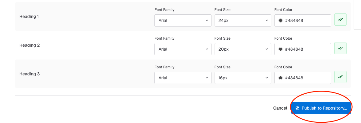Don’t forget to save changes by scrolling down and clicking the "Publish to Repository..." button: