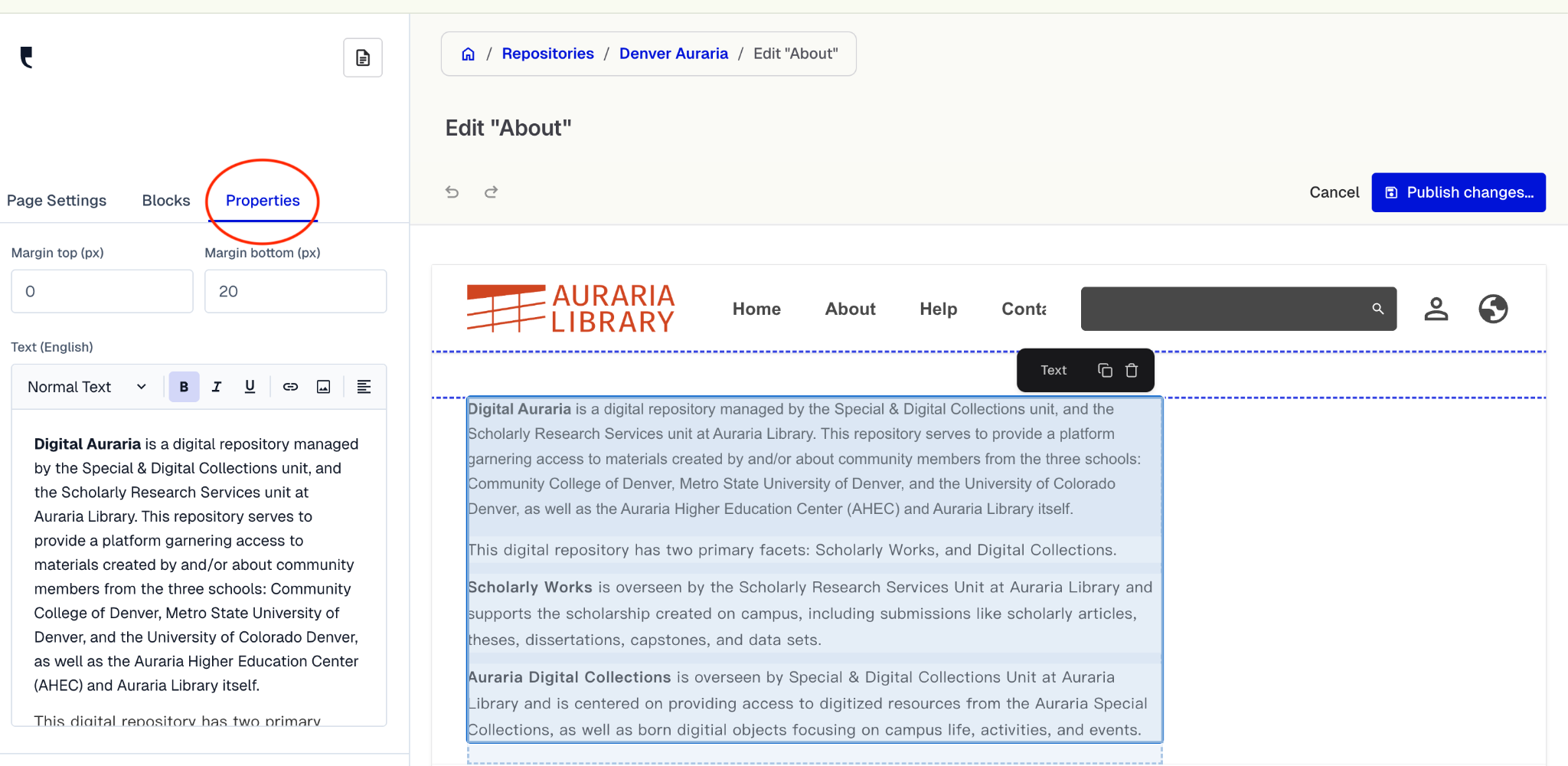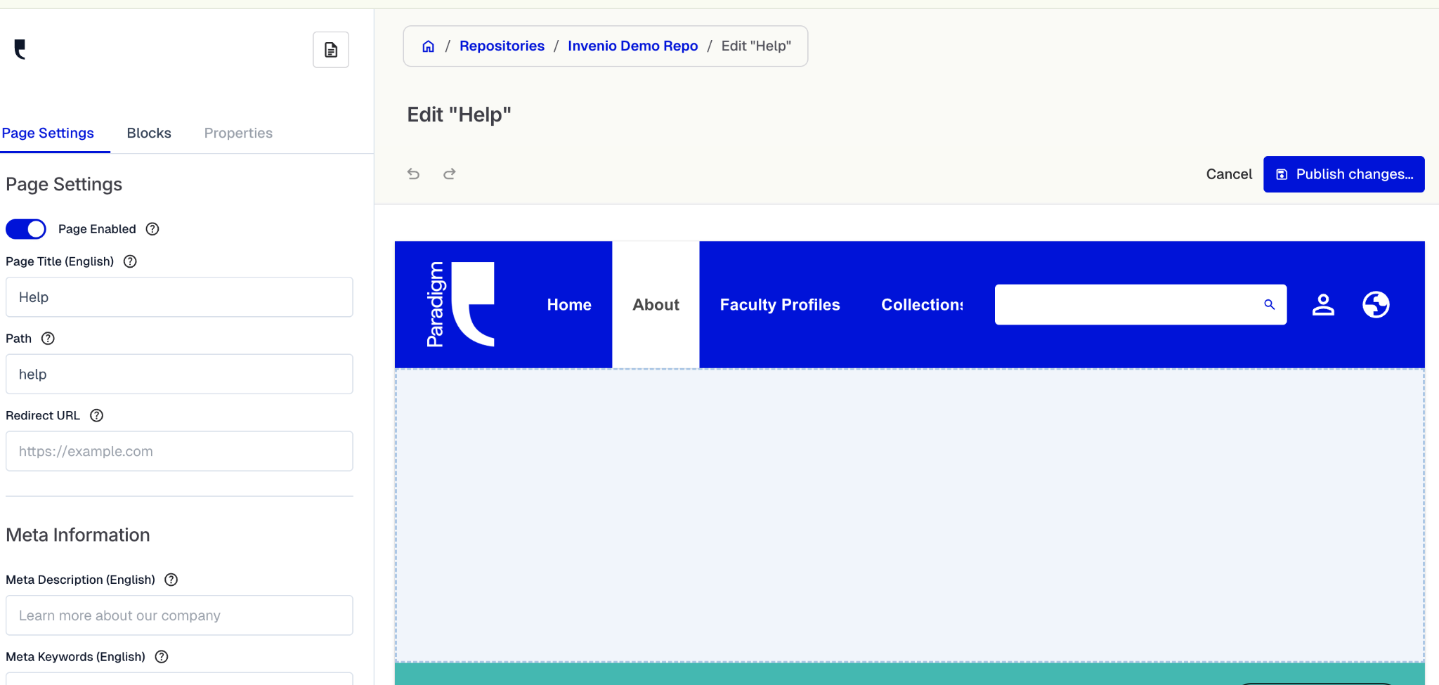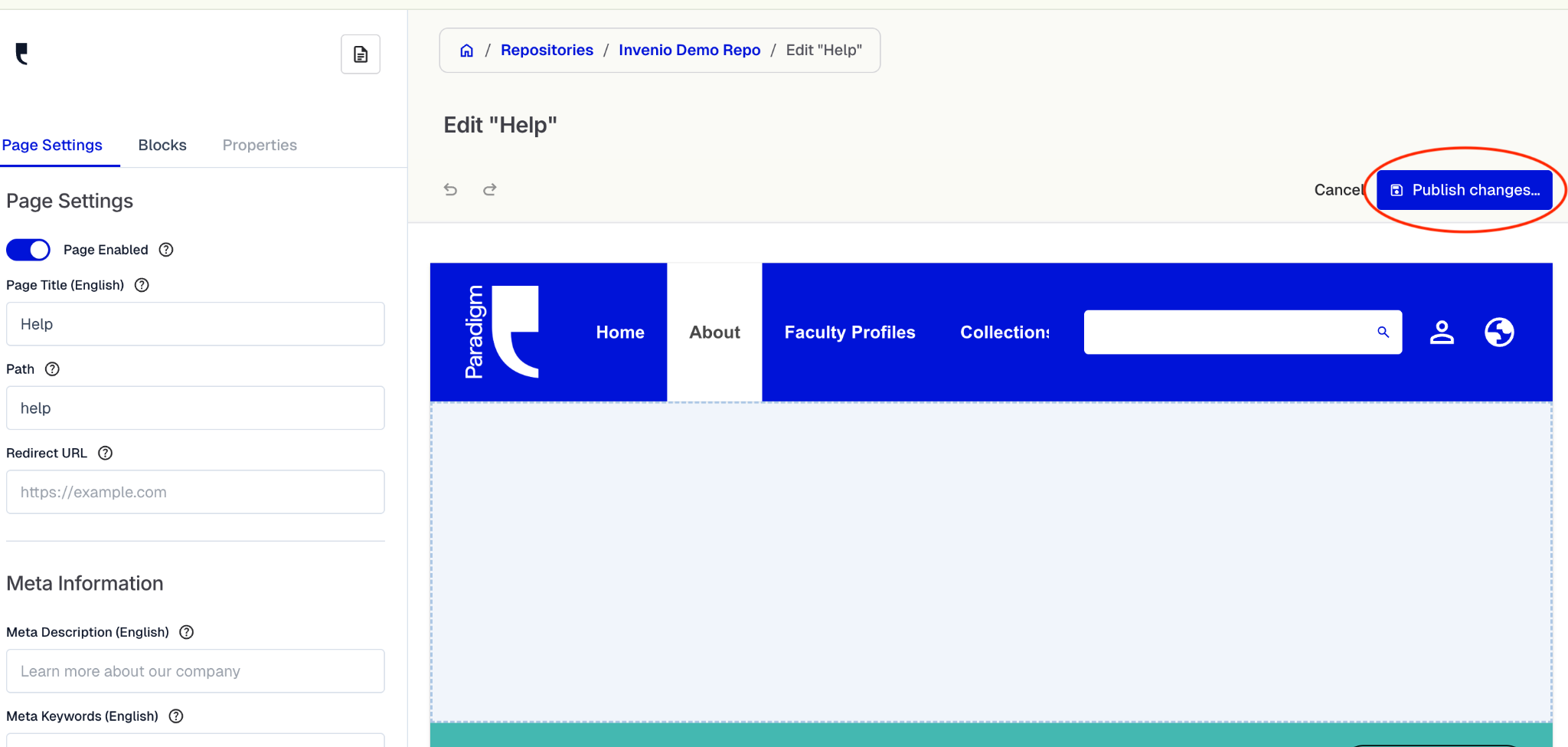 Remember to click the blue “Publish Changes” button in the top right corner after editing.