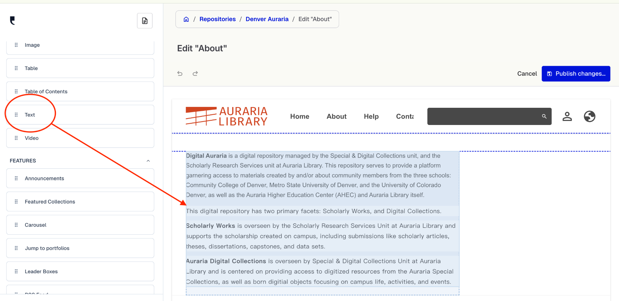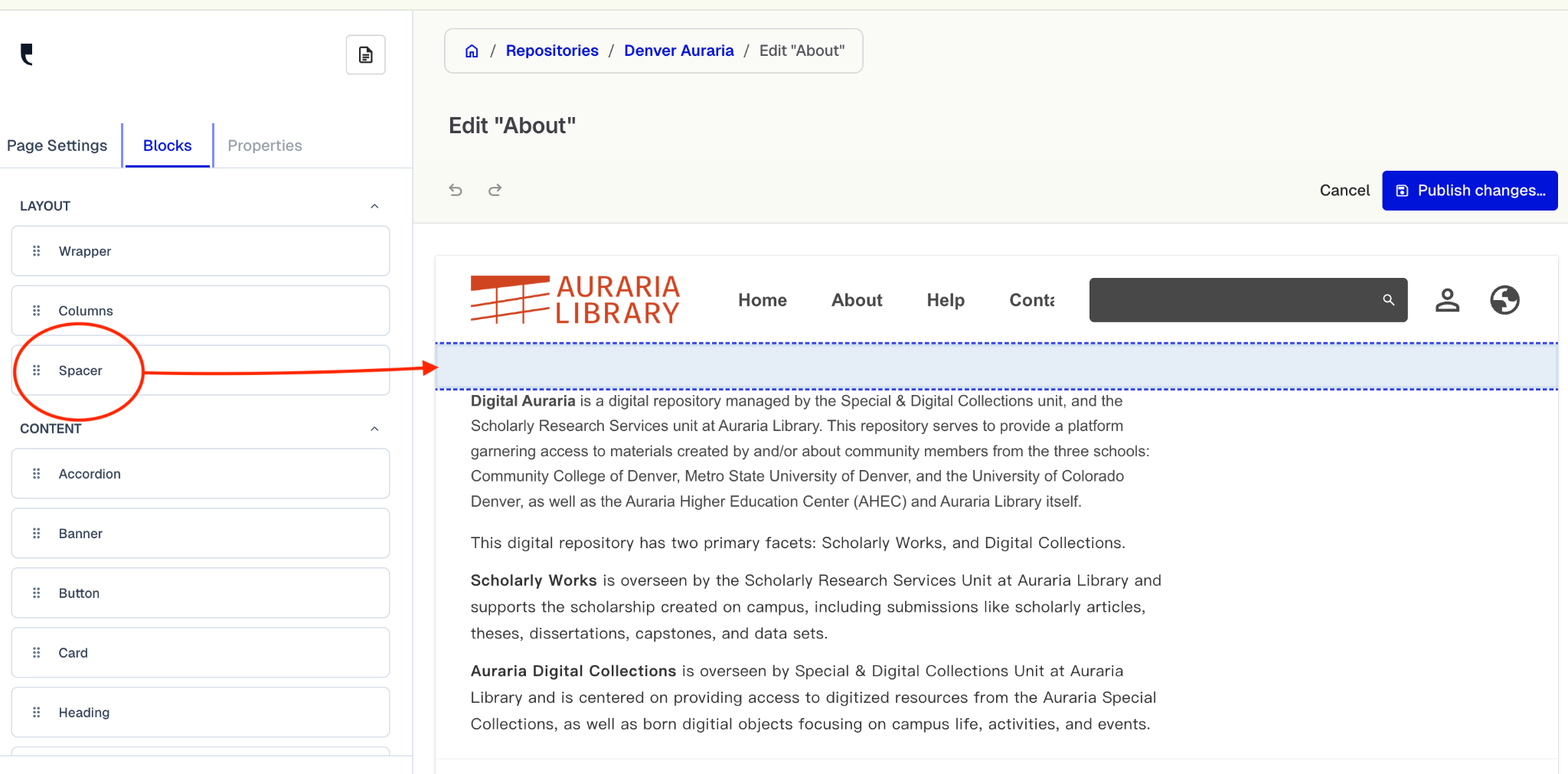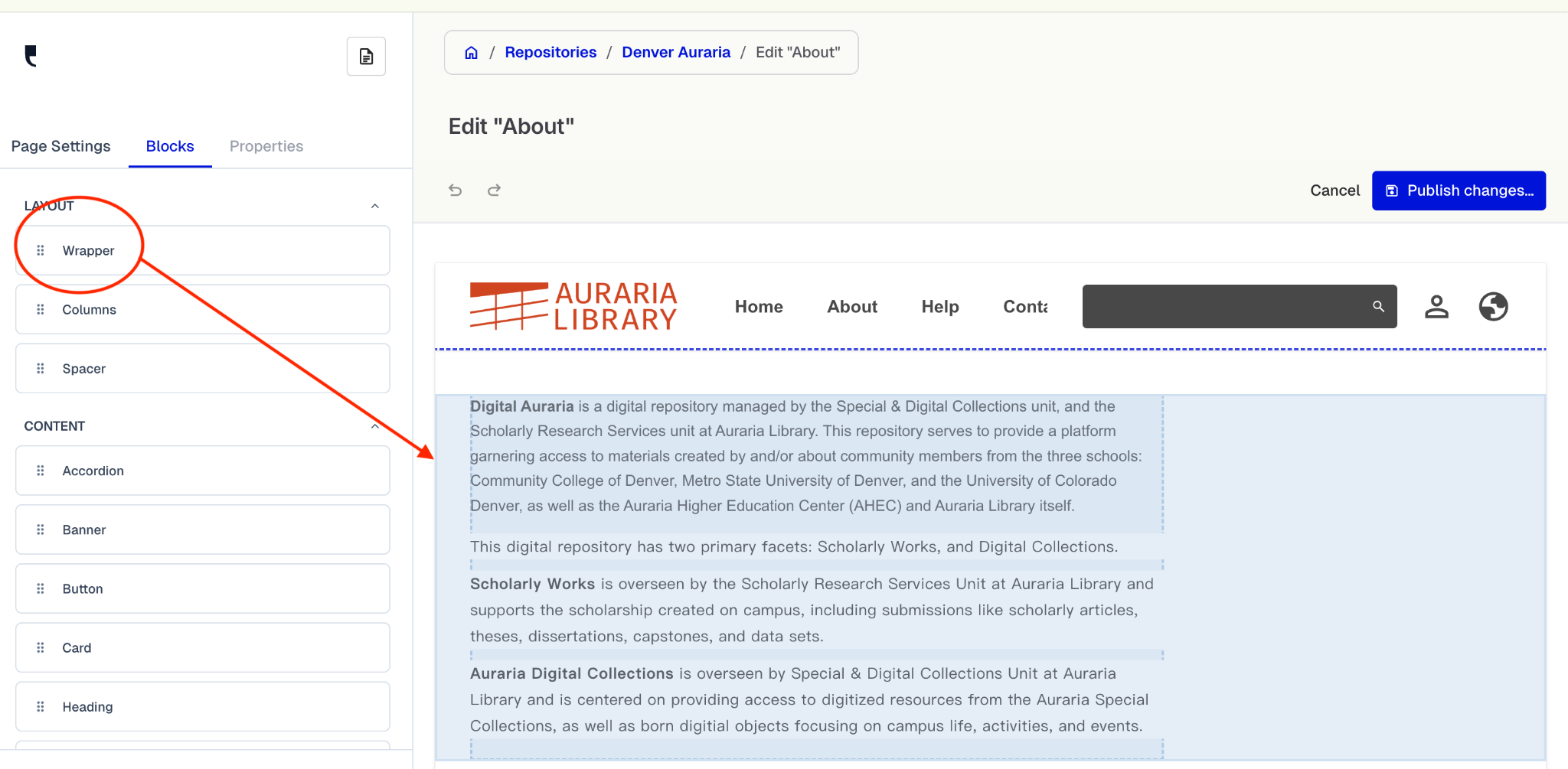 Remember to click the blue “Publish Changes” button in the top right corner after editing.